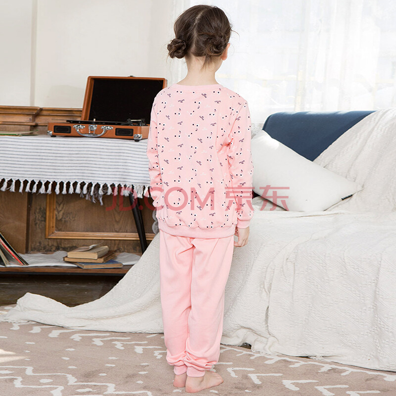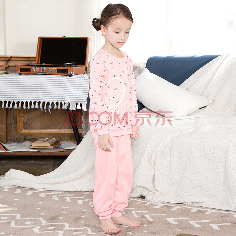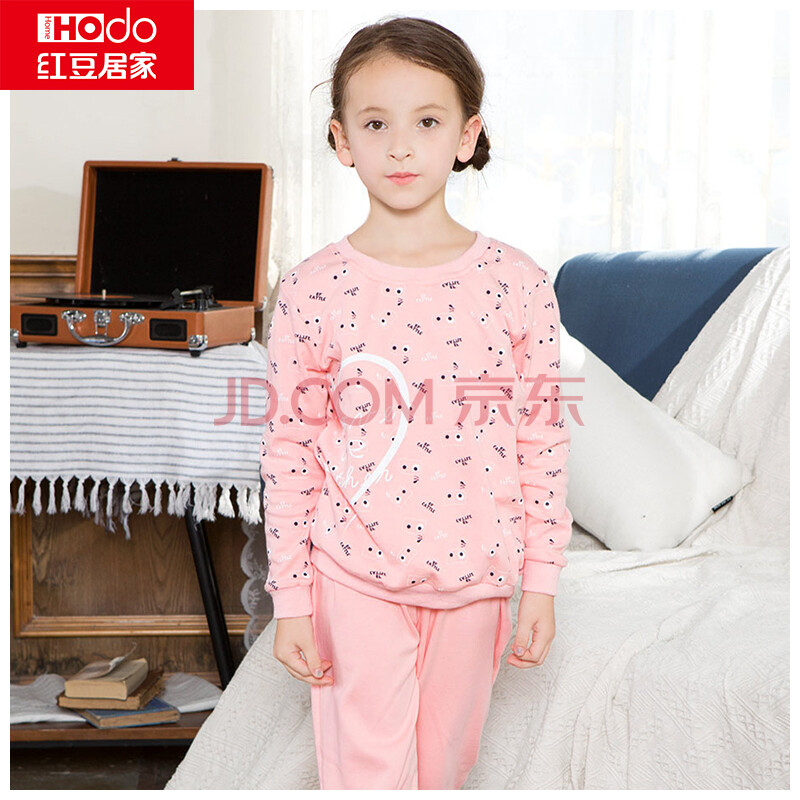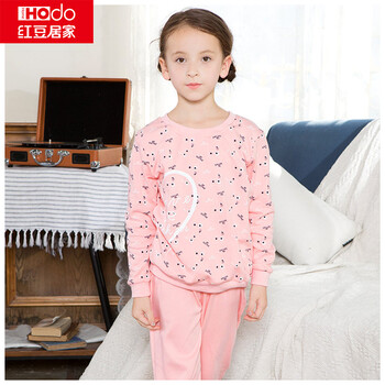 红豆居家(Hodohome)亲子装男女春秋纯棉长袖睡衣套头亲子家居服套装 女童虾红 130/60