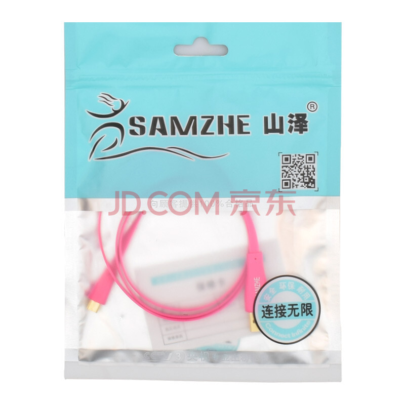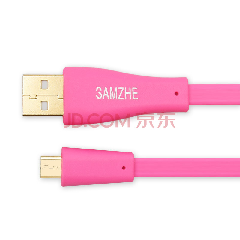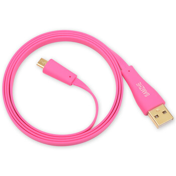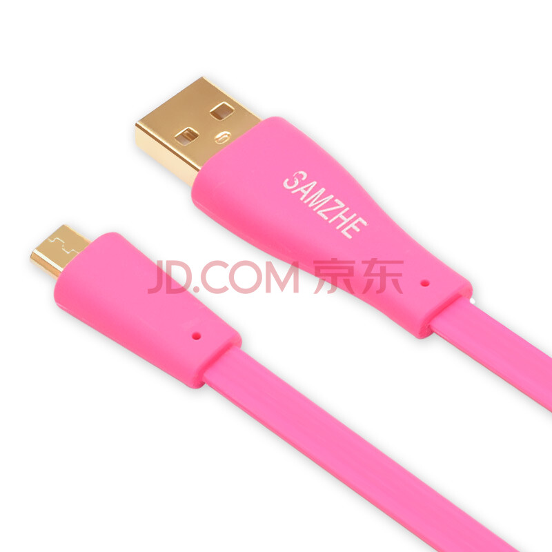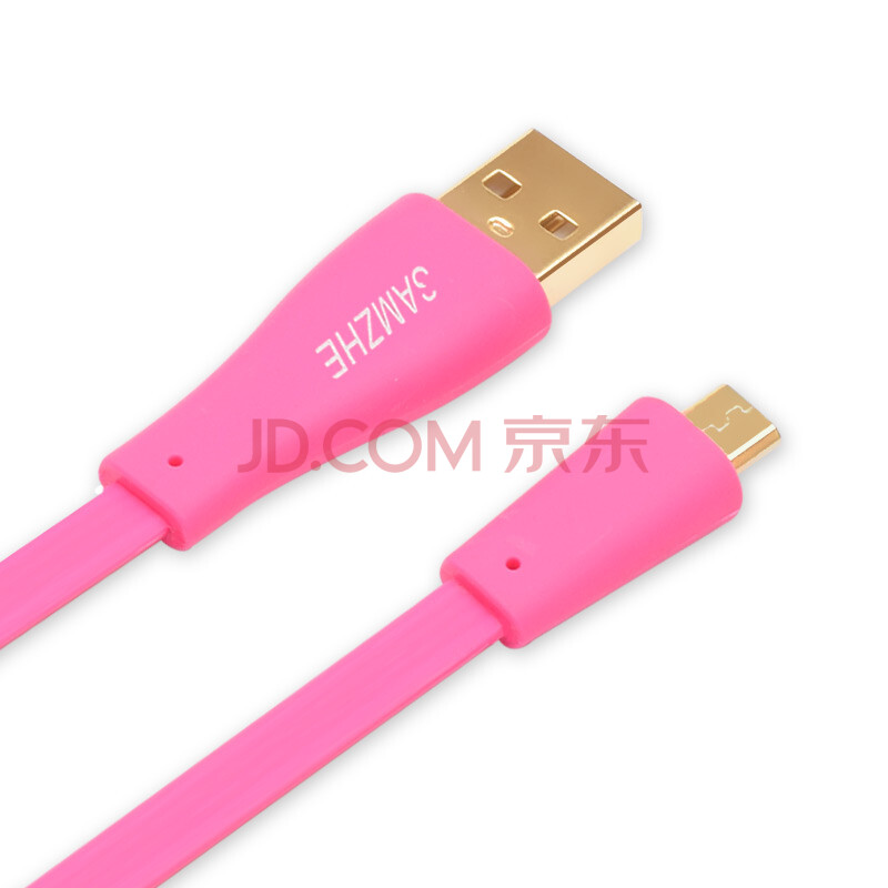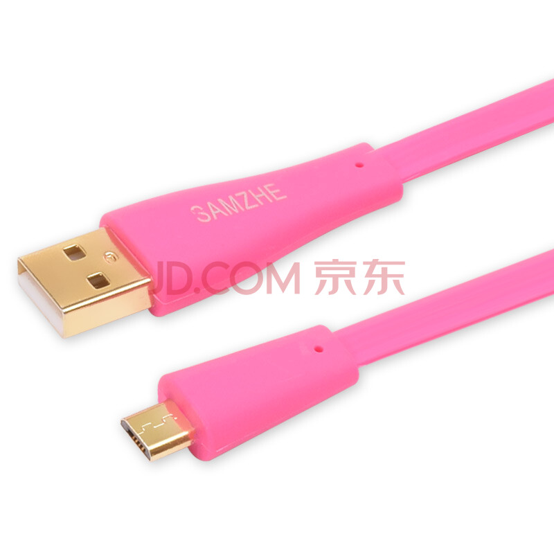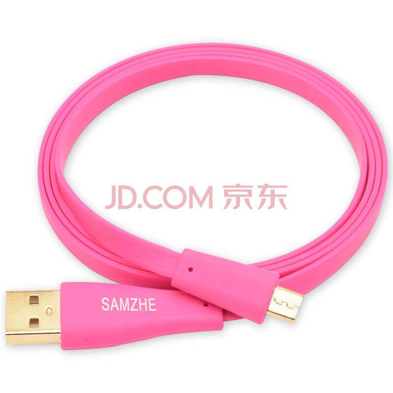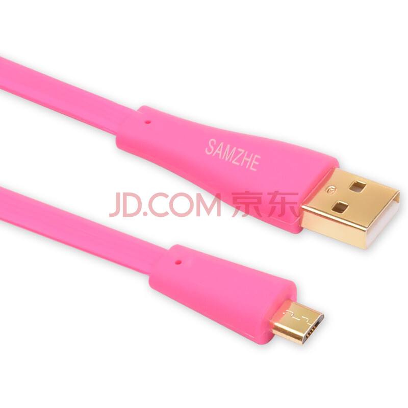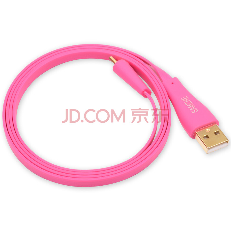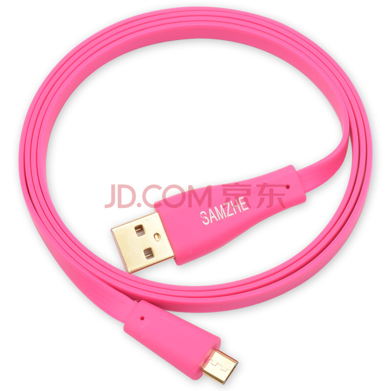 山泽(SAMZHE)Micro USB数据/充电线 镀金扁平 三星/HTC等手机连接线 QSM-801玫红色 1米
