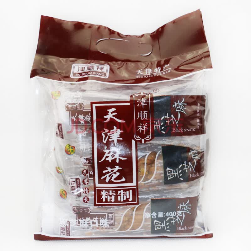 津顺祥 休闲零食 天津特产夹馅麻花(黑芝麻味)400g/袋