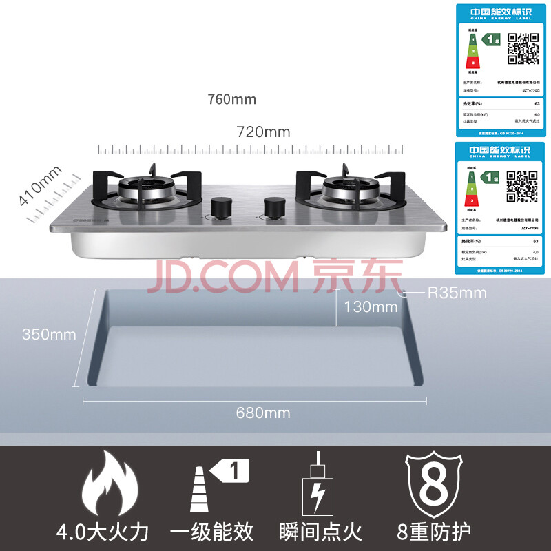 德意(DE&E)不锈钢煤气灶 台嵌两用燃气灶具JZT-770G天然气