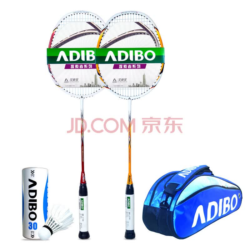 艾迪宝ADIBO 羽毛球拍2支装赠拍包和羽毛球