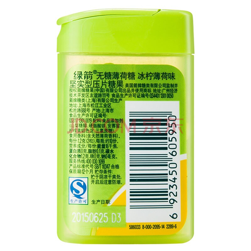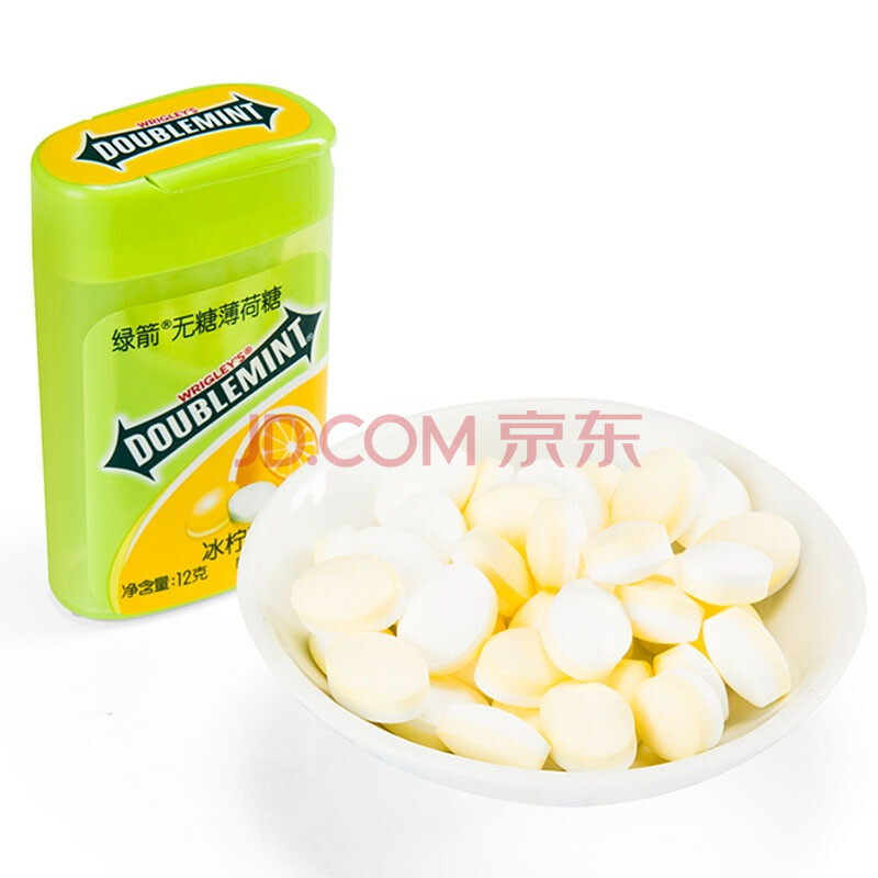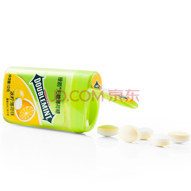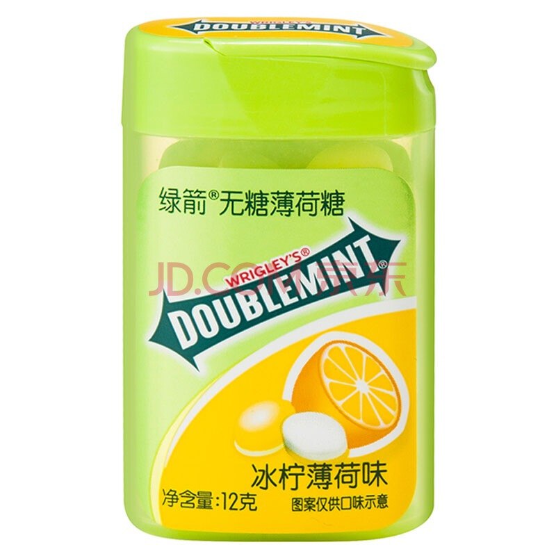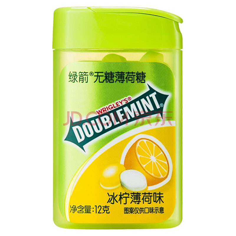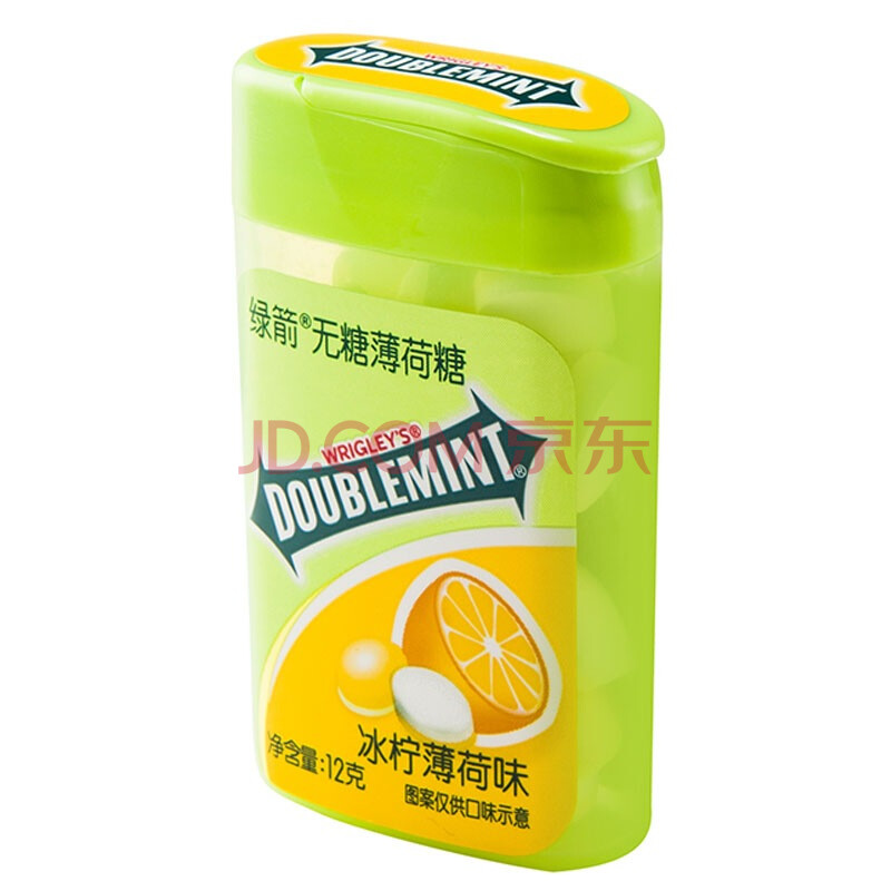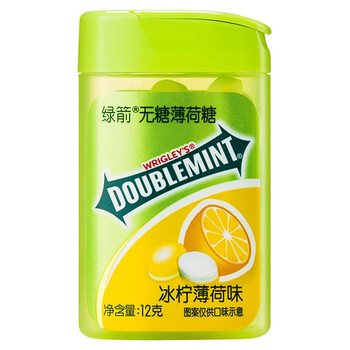 绿箭(DOUBLEMINT)无糖薄荷糖冰柠薄荷味20粒12g塑料盒装(新旧包装随机发)