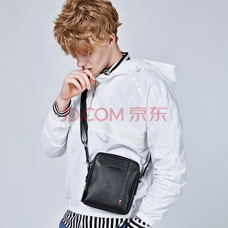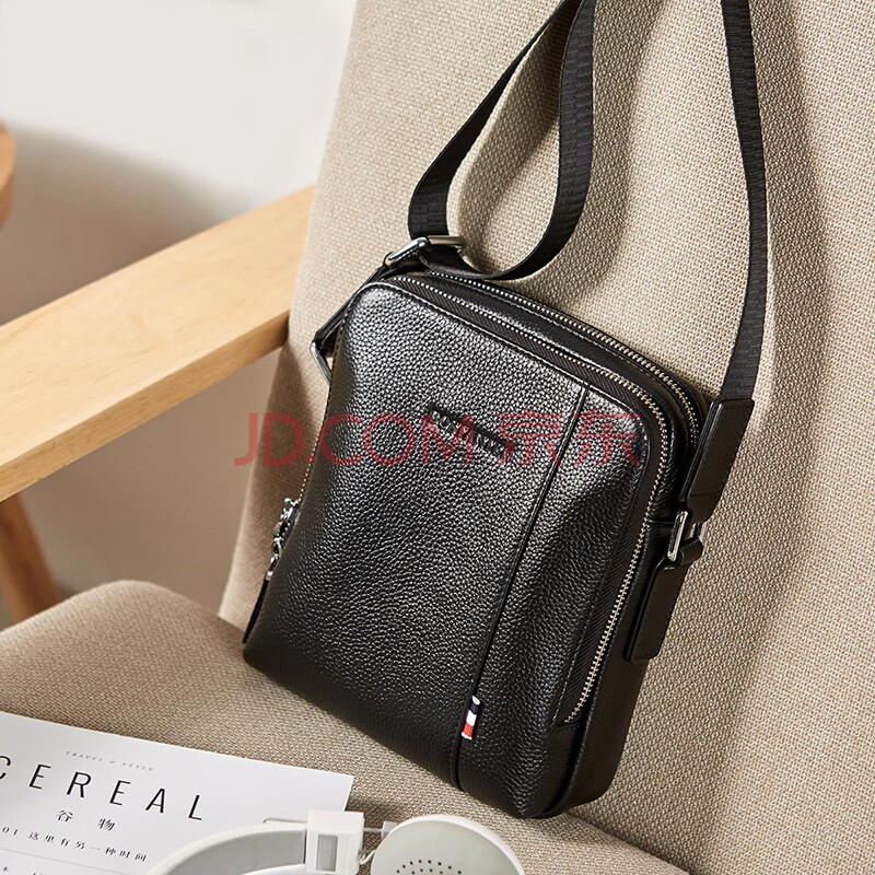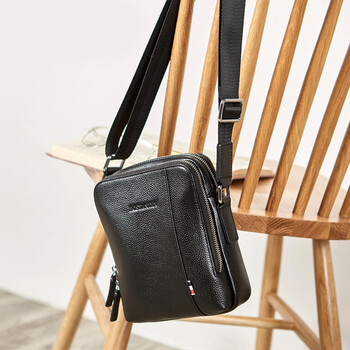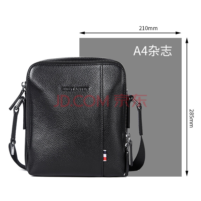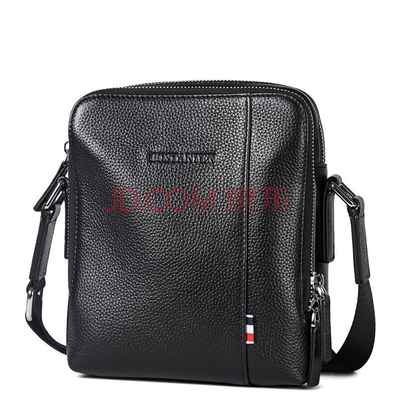 波斯丹顿(BOSTANTEN)男士单肩包 头层牛皮斜挎包男竖款休闲男包迷你小背包 B1172061黑色